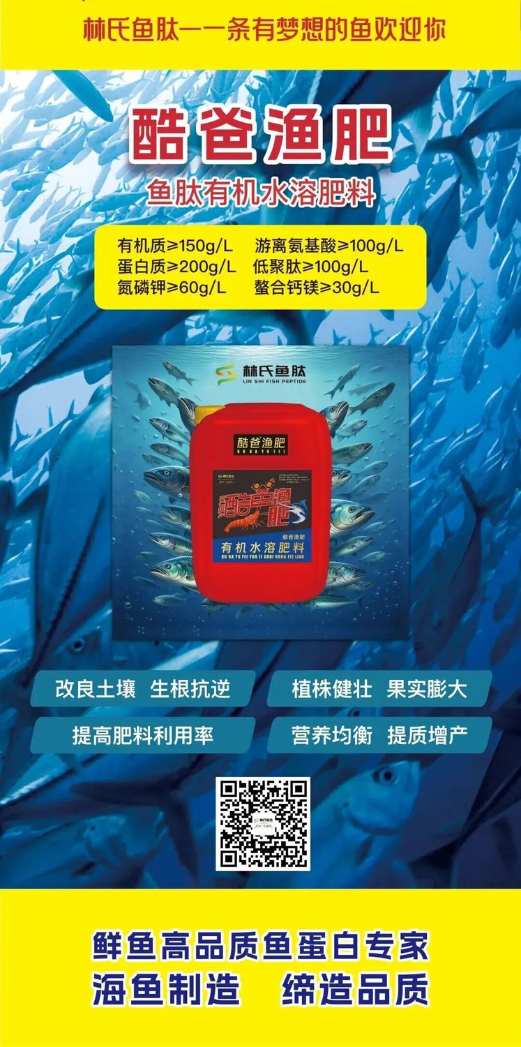 使用林氏魚肽海魚魚漿畝用2公斤,魚肽葉面肥稀釋1000倍葉面噴施。