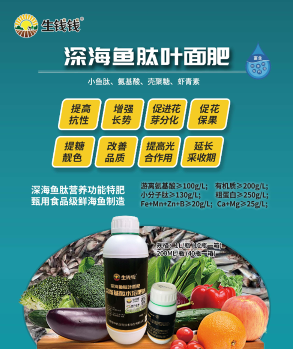 魚肽、海洋生物多肽及多種微量元素等海洋營養(yǎng)物質(zhì),補(bǔ)充植物必需的氨基酸, 促進(jìn)根系發(fā)育, 活化細(xì)胞,促進(jìn)細(xì)胞分裂、分化,使花芽分化更多、更飽滿、壯碩,果梗粗壯、增強(qiáng)樹勢,促花保果,提高作物坐果率。提供作物所需營養(yǎng),增加植物葉綠素含量,增強(qiáng)作物光合作用,激活細(xì)胞活性,增加葉片厚度、葉色亮綠、色澤鮮亮。