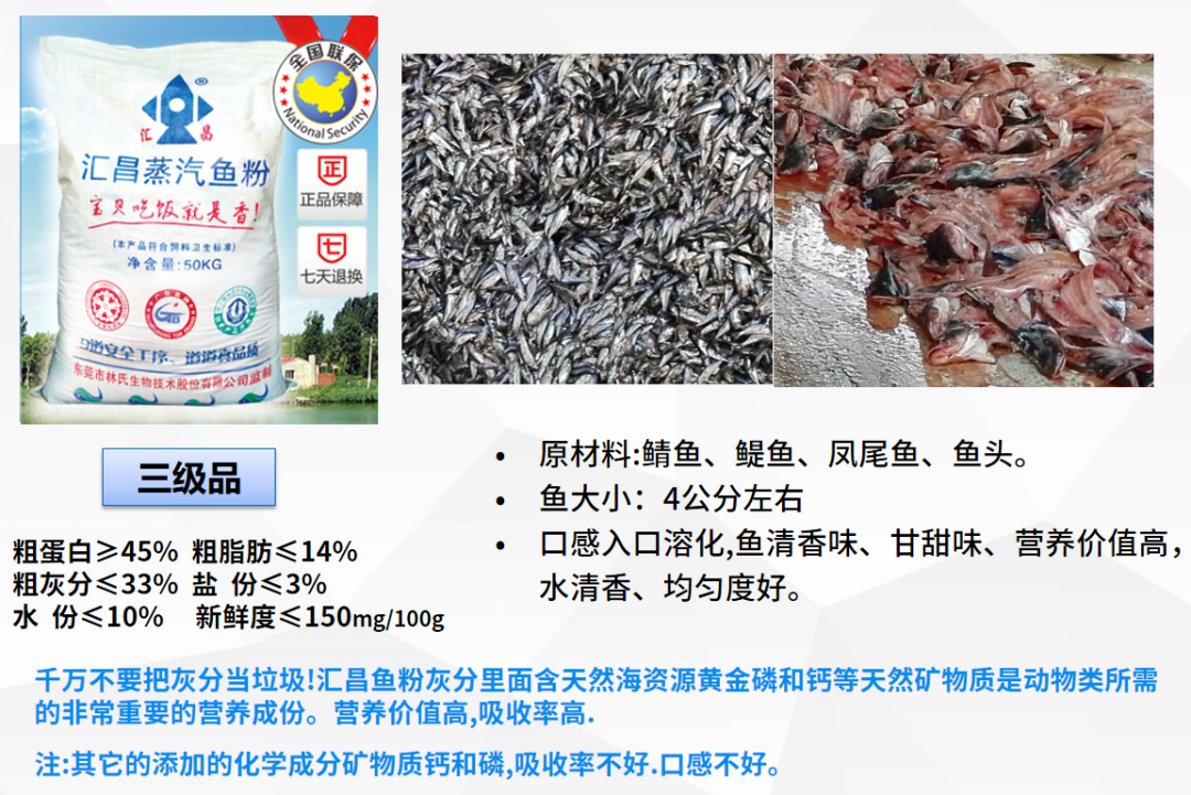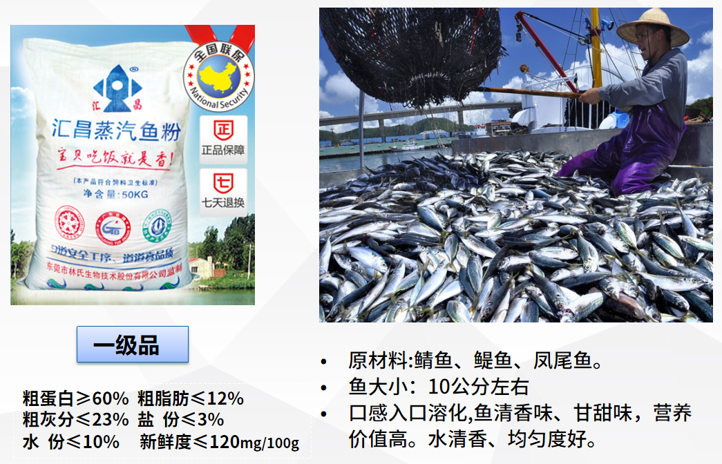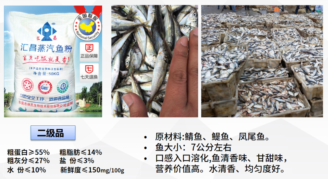 公司自主研發(fā)生產(chǎn)的“匯昌蒸汽魚粉”,是以新鮮海魚為原料,經(jīng)蒸煮、壓榨、烘干后的優(yōu)質(zhì)蛋白原料。品質(zhì)上乘、營養(yǎng)均衡,是一種高蛋白高營養(yǎng)和氨基酸平衡的優(yōu)良產(chǎn)品,含有未知生長因子和多種微量元素的好原料。主要用于家畜家禽養(yǎng)殖、水產(chǎn)養(yǎng)殖和經(jīng)濟動物等,適口性好、誘食性強、采食量大、消化率高,可提高動物的免疫力和抗病力。加快生長速度,縮短養(yǎng)殖周期,節(jié)約成本、達到低投入、高產(chǎn)出的目的。匯昌蒸汽魚粉先后獲得《廣東省著名商標》《廣東省名牌產(chǎn)品》《創(chuàng)新產(chǎn)品優(yōu)秀獎》等諸多獎項。并已獲得國家多項發(fā)明專利和多項實用型專利。