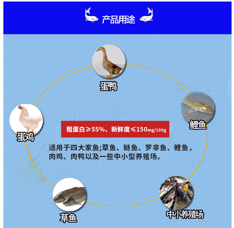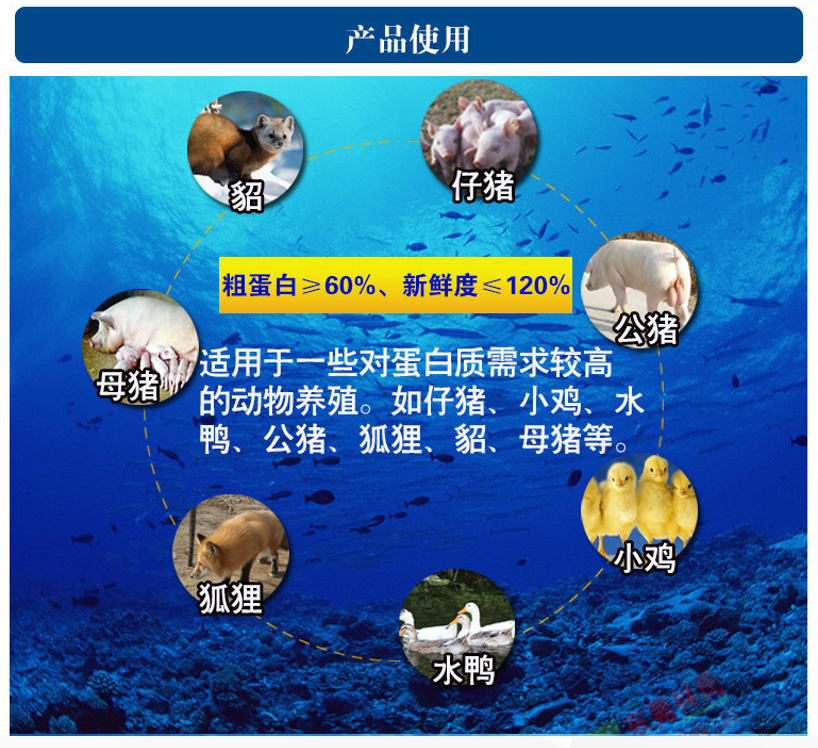 (7)消化率高:雞對魚粉蛋白質(zhì)和脂肪的消化率分別為91%-93%和78%-91%。
